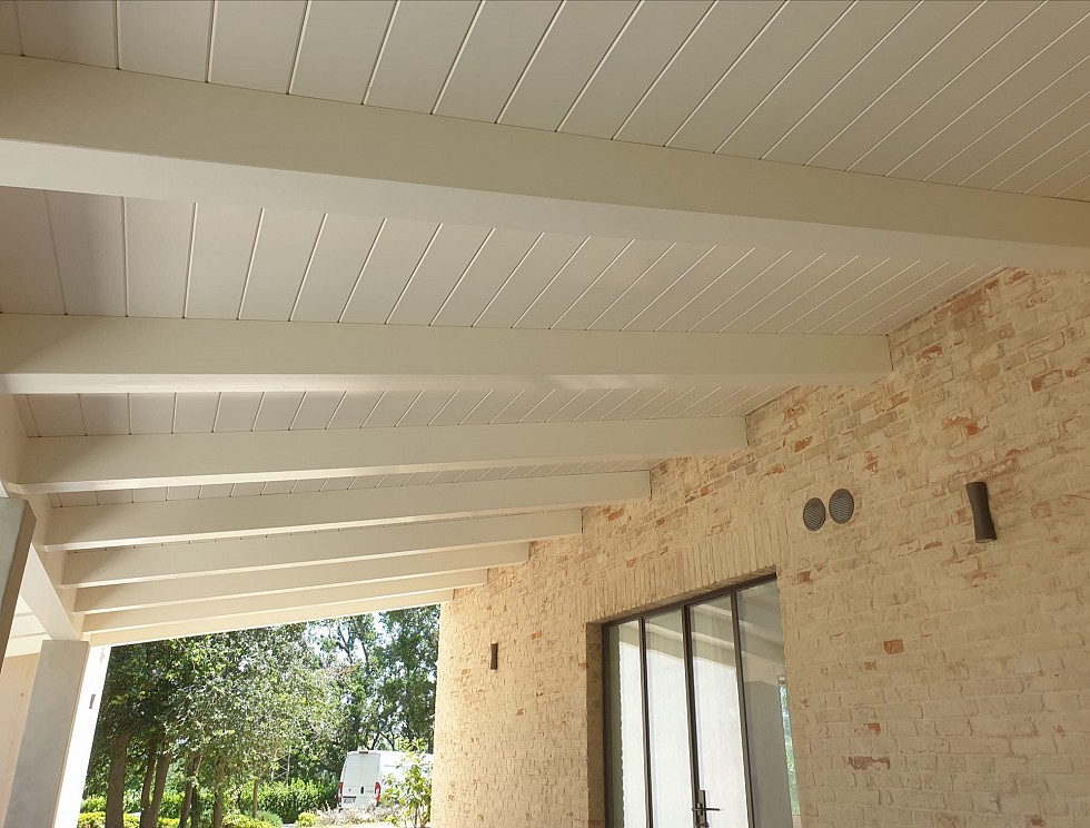 Porticato con travi in abete lamellare e tavolato in abete sbiancati