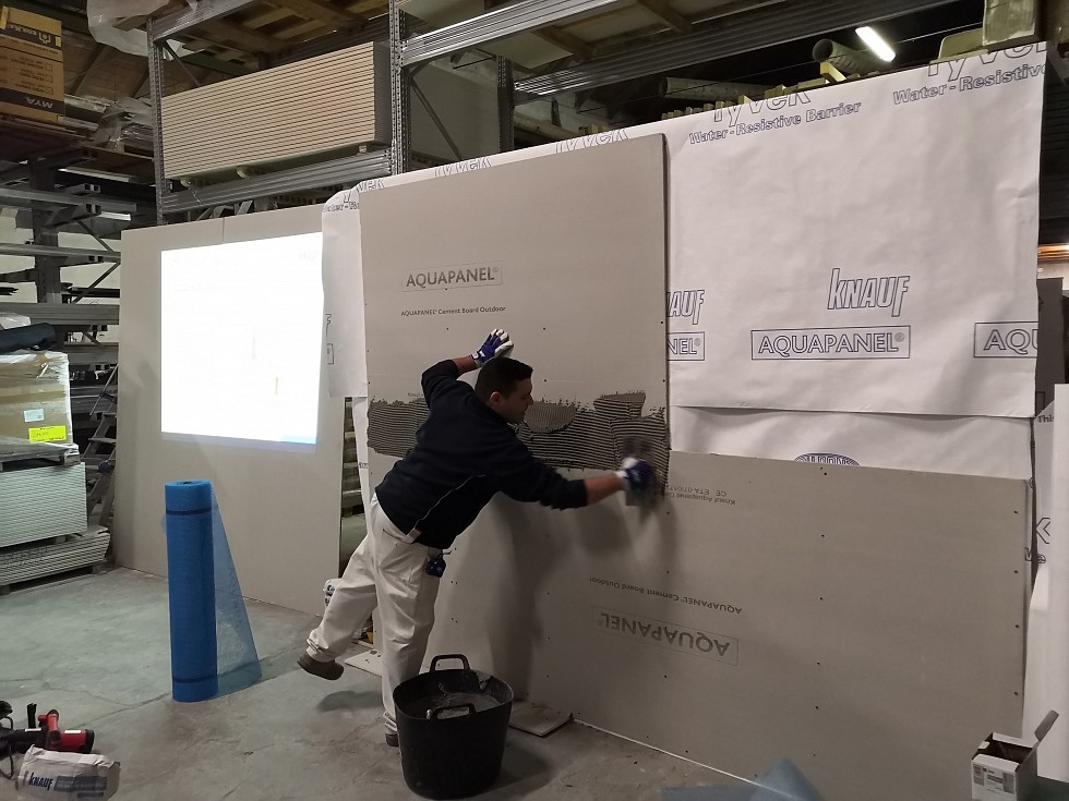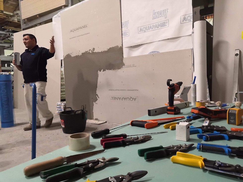 In collaborazione con Knauf abbiamo organizzato un incontro formativo sul sistema KNAUF AQUAPANEL , con delle interessanti prove pratiche di applicazione, stuccatura e rasatura delle lastre.