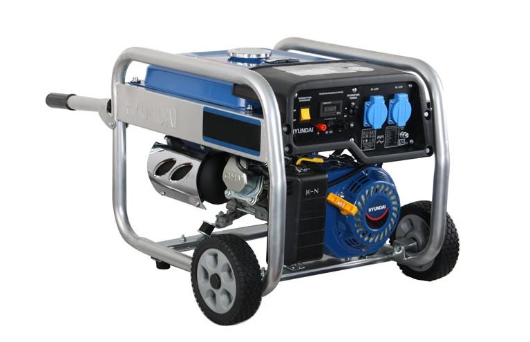 Moderno generatore con motore Hyundai a 4 tempi da 389cc, raffreddato ad aria, alimentazione a benzina. Motore classe Euro 5 . Avvolgimento alternatore in rame 100%. Avviamento manuale, regolatore automatico di tensione AVR. Telaio tubolare di rinforzo, Kit carrello con ruote da 9" per un comodo trasporto.