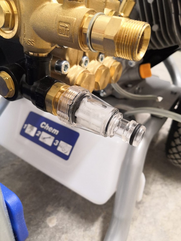 Pro-memoria per l'utilizzo: - posizionare su ON la levetta rossa (foto 1) - assicurarsi che la levetta dell'apertura benzina sia aperta, posizionata verso destra (foto 2) - assicurarsi che sia sempre presente il raccordo innesto rapido trasparente dove va collegato il tubo di uscita dell'acqua (foto 3) - collegare alla lancia uno dei 3 ugelli colorati, a seconda del tipo di getto acqua desiderato (foto 4) - in presenza del detergente nell'apposito serbatoio, si ha una diminuzione della pressione dell'acqua in uscita.
