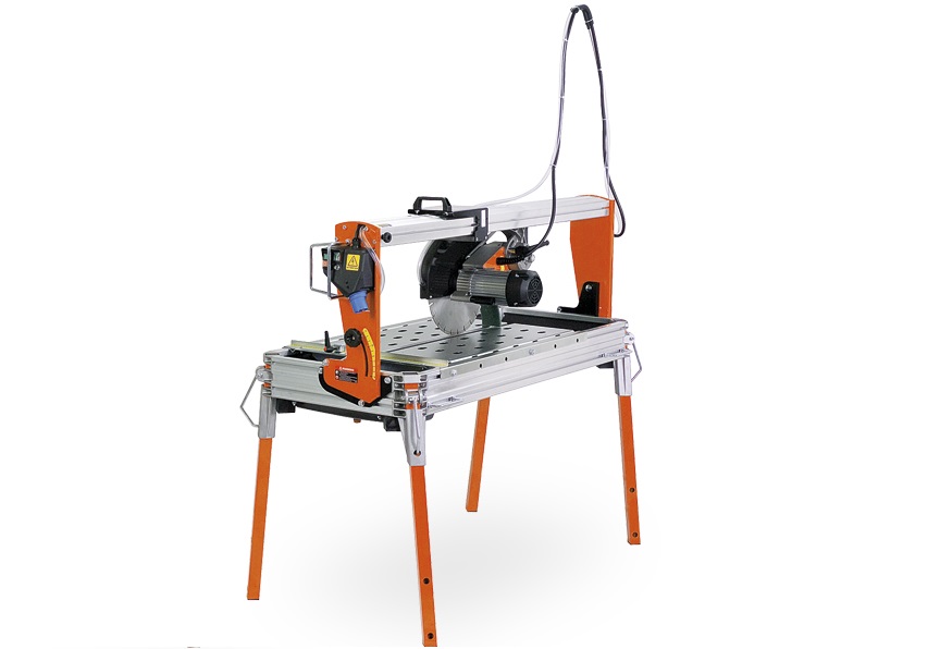 Segatrice a ponte ideale per il cantiere edile: taglio diritto e a 45° di laterizi, pietre, materiali lapidei, mattoni e granito. Lavora con acqua.